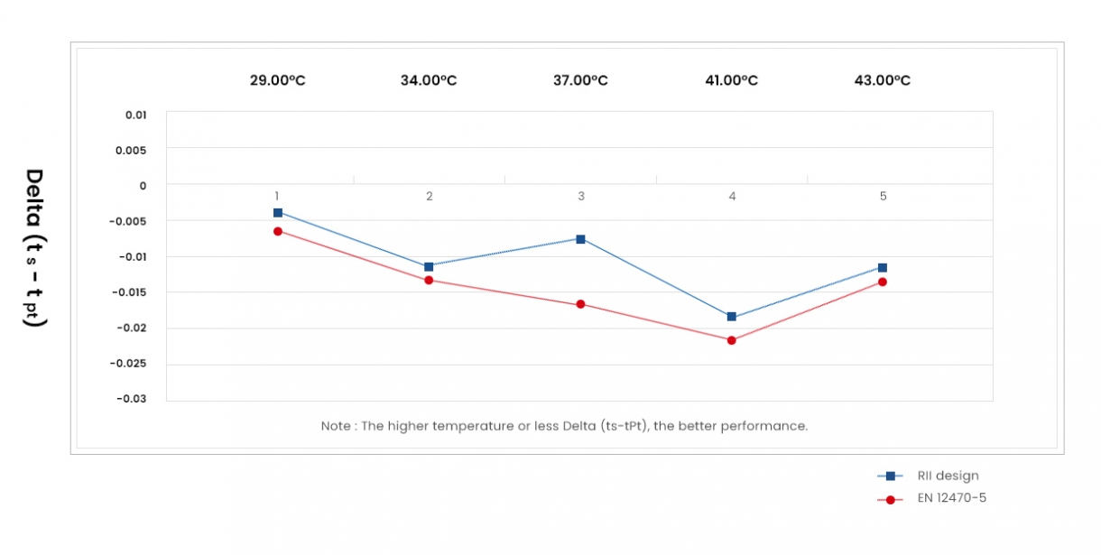 The performance of RII design type Blackbody is better than EN12470-5 type Blackbody.