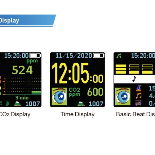 • 內建震動打拍、二氧化碳濃度警示與整點提示