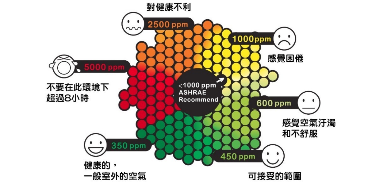 經國際公衛組織證實,新冠病毒通過空氣中的氣溶膠和飛沫接觸傳播,密閉空間中的空調系統亦能成為交叉感染的途徑,因此監控室內二氧化碳濃度,保持良好的通風環境,以降低病毒的飛沫與氣膠累積。